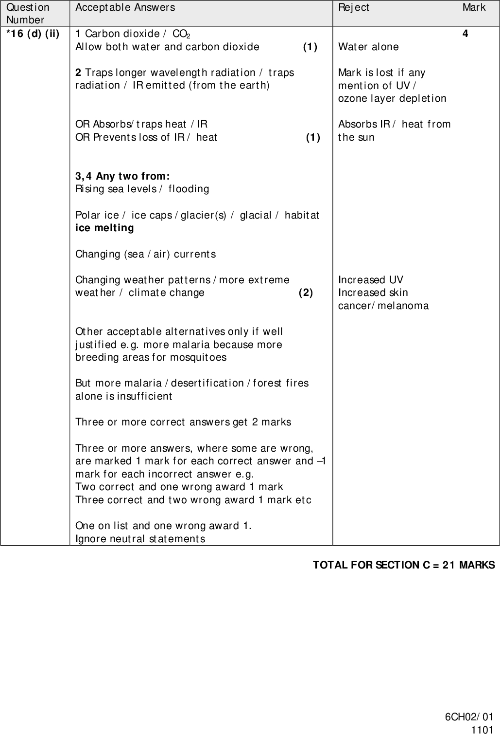 PMT (c) Copper is a catalyst in reaction 2. Explain how a catalyst increases the rate of a reaction. (2) . . . . . . . . . . . . . . . . . . . . . . . . . . . . . . . . . . . . . . . . . . . . . . . . . . . . . . . . . . . . . . . . . . . . . . . . . . . . . . . . . . . . . . . . . . . . . . . . . . . . . . . . . . . . . . . . . . . . . . . . . . . . . . . . . . . . . . . . . . . . . . . . . . . . . . . . . . . . . . . . . . . . . . . . . . . . . . . . . . . . . . . . . . . . . . . . . . . . . . . . . . . . . . . . . . . . . . . . . . . . . . . . . . . . . . . . . . . . . . . . . . . . . . . . . . . . . . . . . . . . . . . . . . . . . . . . . . . . . . . . . . . . . . . . . . . . . . . . . . . . . . . . . . . . . . . . . . . . . . . . . . . . . . . . . . . . . . . . . . . . . . . . . . . . . . . . . . . . . . . . . . . . . . . . . . . . . . . . . . . . . . . . . . . . . . . . . . . . . . . . . . . . . . . . . . . . . . . . . . . . . . . . . . . . . . . . . . . . . . . . . . . . . . . . . . . . . . . . . . . . . . . . . . . . . . . . . . . . . . . . . . . . . . . . . . . . . . . . . . . . . . . . . . . . . . . . . . . . . . . . . . . . . . . . . . . . . . . . . . . . . . . . . . . . . . . . . . . . . . . . . . . . . . . . . . . . . . . . . . . . . . . . . . . . . . . . . . . . . . . . . . . . . . . . . . . . . . . . . . . . . . . . . . . . . . . . . . . . . . . . . . . . . . . . . . . . . . . . . . . . . . . . . . . . . . . . . . . . . . . . . . . . . . . . . . . . . . . . . . . . . . . . . . . . . . . . . . . . . . . . . . . . . . . . . . . . . . . . . . . . . . . . . . . . . . . . . . . . . . . . . . . . . . . . . . . . . . . . . . . . . . . . . . . . . . . . . . . . . . . . . . . . . . . . . . . . . . . . . . . . . . . . . . . . . . . . . . . . . . . . . . . . . . . . . . . . . . . . . . . . . . . . . . . . . . . . . . . . . . . . . . . . . . . . . . . . . . . . . . . . . . . . . . . . . . . . . . . . . . . . . . . . . . . . . . . . . . . . . . . . . . . . . . . . . . . . . . . . . . . . . . . . . . . . . . . . . . . . . . . . . . . . . . . . . . . . . . . . . . . . . . . . . . . . . . . . . . . . . . . . . . . . . . . . . . . . . . . . . . . . . . . . . . . . . . . . . . . . . . . . . . . . . . . . . . . . . . . . . . . . . . . . . . . . . . . . . . . . . . . . . . . . . . . . . . . . . . . . . . . . . . . . . . . . . . . . . . . . . . . . . . . . . . . . . . . . . . . . . . . . . . . . . . . . . . . . . . . . . . . . . . . . . . . . . . . . . . . . . . . . . . . . . . . . . . . . . . . . . . . . . . . . . . . . . . . . . . . . . . . . . . . . . . . . . . . . . . . . . . . . . . . . . . . . . . . . . . . . . . . . . . . . . . . . . . . . . . . . . . . . . . . . . . . . . . . . . . . . . . . . . . . . . . . . . . . . . . . . . . . . . . . . . . . . . . . . . . . . . . . . . . . . . . . . . . . . . . . . . . . . . . . . . . . . . . . . . . . . . . . . . . . . . . . . . . . . . . . . . . . . . . . . . . . . . . . . . . . . . . . . (d) (i) State one economic advantage of reaction 4. (1) . . . . . . . . . . . . . . . . . . . . . . . . . . . . . . . . . . . . . . . . . . . . . . . . . . . . . . . . . . . . . . . . . . . . . . . . . . . . . . . . . . . . . . . . . . . . . . . . . . . . . . . . . . . . . . . . . . . . . . . . . . . . . . . . . . . . . . . . . . . . . . . . . . . . . . . . . . . . . . . . . . . . . . . . . . . . . . . . . . . . . . . . . . . . . . . . . . . . . . . . . . . . . . . . . . . . . . . . . . . . . . . . . . . . . . . . . . . . . . . . . . . . . . . . . . . . . . . . . . . . . . . . . . . . . . . . . . . . . . . . . . . . . . . . . . . . . . . . . . . . . . . . . . . . . . . . . . . . . . . . . . . . . . . . . . . . . . . . . . . . . . . . . . . . . . . . . . . . . . . . . . . . . . . . . . . . . . . . . . . . . . . . . . . . . . . . . . . . . . . . . . . . . . . . . . . . . . . . . . . . . . . . . . . . . . . . . . . . . . . . . . . . . . . . . . . . . . . . . . . . . . . . . . . . . . . . . . . . . . . . . . . . . . . . . . . . . . . . . . . . . . . . . . . . . . . . . . . . . . . . . . . . . . . . . . . . . . . . . . . . . . . . . . . . . . . . . . . . . . . . . . . . . . . . . . . . . . . . . . . . . . . . . . . . . . . . . . . . . . . . . . . . . . . . . . . . . . . . . . . . . . . . . . . . . . . . . . . . . . . . . . . . . . . . . . . . . . . . . . . . . . . . . . . . . . . . . . . . . . . . . . . . . . . . . . . . . . . . . . . . . . . . . . . . . . . . . . . . . . . . *(ii) Reaction 4 contributes to global warming. Identify the substance formed in this reaction which is likely to be responsible and explain the processes that lead to an increase in global temperatures. Suggest two effects an increase in global temperatures might have on the environment. (4) . . . . . . . . . . . . . . . . . . . . . . . . . . . . . . . . . . . . . . . . . . . . . . . . . . . . . . . . . . . . . . . . . . . . . . . . . . . . . . . . . . . . . . . . . . . . . . . . . . . . . . . . . . . . . . . . . . . . . . . . . . . . . . . . . . . . . . . . . . . . . . . . . . . . . . . . . . . . . . . . . . . . . . . . . . . . . . . . . . . . . . . . . . . . . . . . . . . . . . . . . . . . . . . . . . . . . . . . . . . . . . . . . . . . . . . . . . . . . . . . . . . . . . . . . . . . . . . . . . . . . . . . . . . . . . . . . . . . . . . . . . . . . . . . . . . . . . . . . . . . . . . . . . . . . . . . . . . . . . . . . . . . . . . . . . . . . . . . . . . . . . . . . . . . . . . . . . . . . . . . . . . . . . . . . . . . . . . . . . . . . . . . . . . . . . . . . . . . . . . . . . . . . . . . . . . . . . . . . . . . . . . . . . . . . . . . . . . . . . . . . . . . . . . . . . . . . . . . . . . . . . . . . . . . . . . . . . . . . . . . . . . . . . . . . . . . . . . . . . . . . . . . . . . . . . . . . . . . . . . . . . . . . . . . . . . . . . . . . . . . . . . . . . . . . . . . . . . . . . . . . . . . . . . . . . . . . . . . . . . . . . . . . . . . . . . . . . . . . . . . . . . . . . . . . . . . .