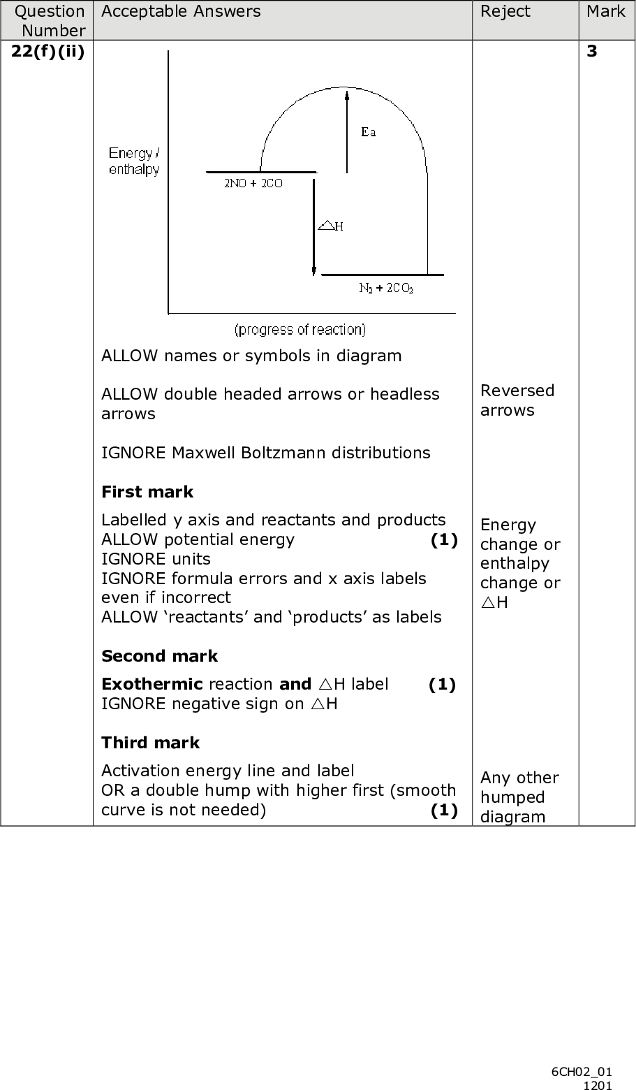 (ii) Draw an energy profile for the exothermic reaction in (f)(i). Label the axes, the reactants and products, the enthalpy change and the activation energy. (3) PMT *(iii) By referring to your energy profile, explain how a catalyst speeds up a chemical reaction. (3)(cid:3) (cid:11)(cid:74)(cid:12)(cid:3)(cid:45)(cid:72)(cid:87)(cid:3)(cid:68)(cid:76)(cid:85)(cid:70)(cid:85)(cid:68)(cid:73)(cid:87)(cid:3)(cid:68)(cid:85)(cid:72)(cid:3)(cid:70)(cid:82)(cid:81)(cid:86)(cid:76)(cid:71)(cid:72)(cid:85)(cid:72)(cid:71)(cid:3)(cid:68)(cid:3)(cid:74)(cid:85)(cid:72)(cid:68)(cid:87)(cid:72)(cid:85)(cid:3)(cid:87)(cid:75)(cid:85)(cid:72)(cid:68)(cid:87)(cid:3)(cid:87)(cid:82)(cid:3)(cid:87)(cid:75)(cid:72)(cid:3)(cid:82)(cid:93)(cid:82)(cid:81)(cid:72)(cid:3)(cid:79)(cid:68)(cid:92)(cid:72)(cid:85)(cid:3)(cid:87)(cid:75)(cid:68)(cid:81)(cid:3)(cid:85)(cid:82)(cid:68)(cid:71)(cid:3)(cid:89)(cid:72)(cid:75)(cid:76)(cid:70)(cid:79)(cid:72)(cid:86)(cid:17)(cid:3)(cid:3) Suggest an explanation for this. (2)(Total for Question 22 = 20 marks) TOTAL FOR SECTION C = 20 MARKS TOTAL FOR PAPER = 80 MARKS *P39303A02124* 21<br />
