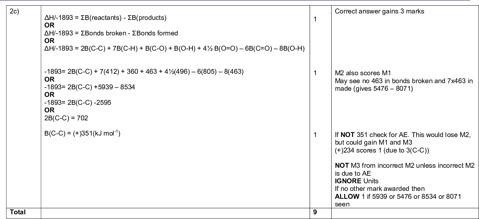 do not write outside the box standard enthalpy of combustion data can be used to calculate enthalpies of formation a state the meaning of the term standard enthalpy of combustion marks b the equation corresponding to the enthalpy of formation of propan ol is shown c s h g o g ch ch ch oh l table contains some standard enthalpy of combustion data table hc kj mol c s h g ch ch ch oh i use data from table to calculate a value for the standard enthalpy of formation of propan ol show your working marks wmp jun chem do not write outside the box c an equation for the complete combustion of gaseous propan ol is shown ch ch ch oh g o g co g h o g h kj mol table shows some bond enthalpy data table bond enthalpy kj mol c h c o o h c o o o use data from table and the enthalpy change for this reaction to calculate a value for the bond enthalpy of a c c bond in propan ol marks turn over for the next question turn over wmp jun chem